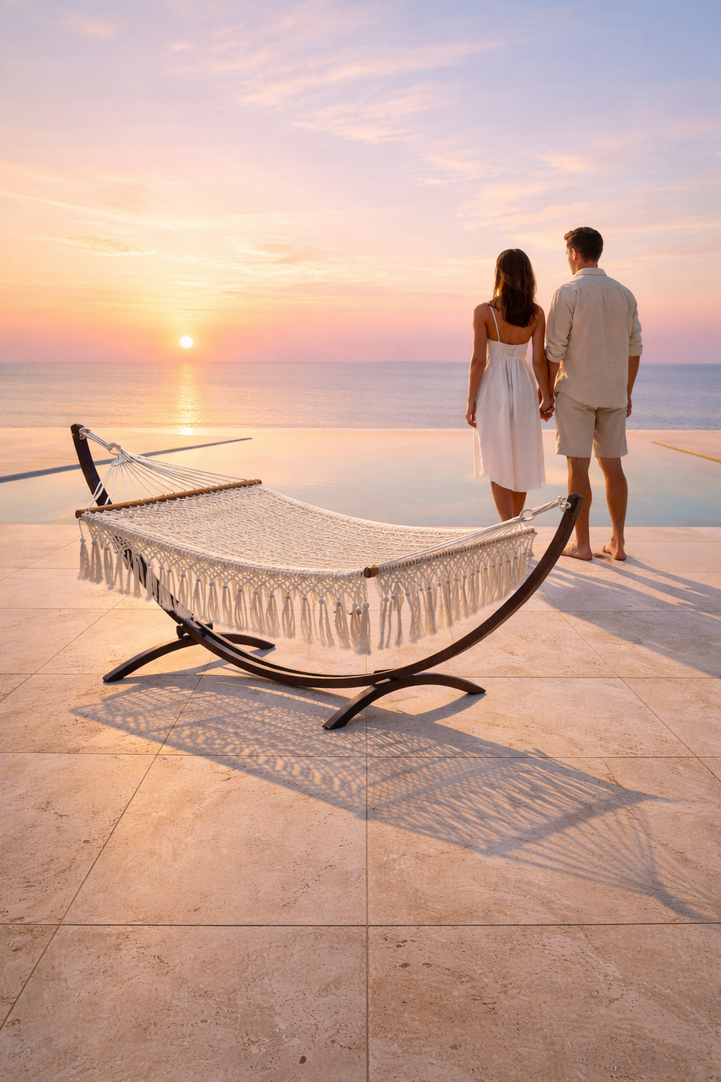 Мебель из гамакового шнура всепогодна: её можно мыть водой, она не боится дождя. Изделия из хлопковой нити созданы для интерьеров и крытых террас, обеспечивая максимальную тактильность и уют в доме.
